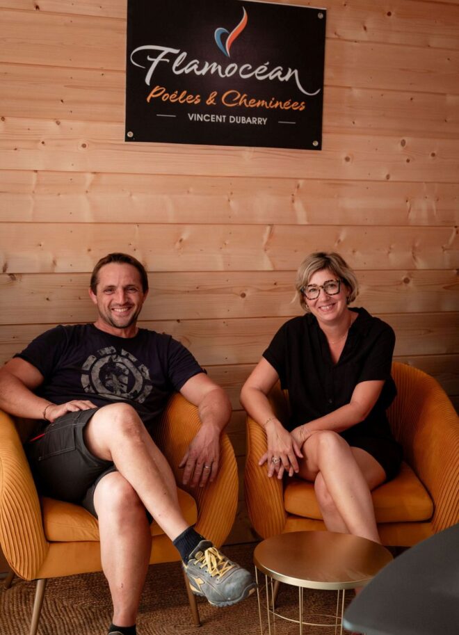 Installés à Seignosse depuis 2015, Vincent et Christelle dirigent l’entreprise Flamocean, le spécialiste des cheminées sur mesure, poêles à bois et poêles à granulés dans les Landes. Vincent Dubarry, artisan tailleur de pierre conçoit et installe des espaces feu élégants et performants, alliant design contemporain, confort thermique et savoir-faire artisanal.